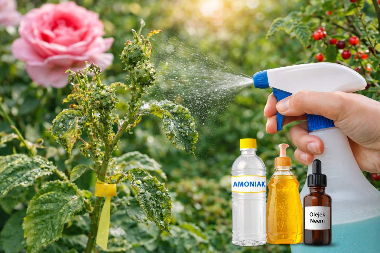 Walka z mszycami nie wymaga arsenału chemicznych środków ochrony roślin. Trzy proste, domowe preparaty – oprysk z amoniaku, roztwór mydła potasowego i emulsja z oleju neem – stosowane regularnie i we właściwy sposób, skutecznie chronią róże, porzeczki, maliny i młode drzewka owocowe przed inwazją tych żarłocznych szkodników. Pamiętaj o opryskiwaniu spodniej strony liści, powtarzaniu zabiegów co 7-14 dni i wspieraniu naturalnych wrogów mszyc, takich jak biedronki czy złotookii. Łącząc te metody, stworzysz w swoim ogrodzie naturalną barierę ochronną, która pozwoli Twoim roślinom rosnąć zdrowo i bujnie, bez lepkich liści i poskręcanych pędów. Twój ogród zasługuje na to, by być zielonym azylem – nie polem bitwy.