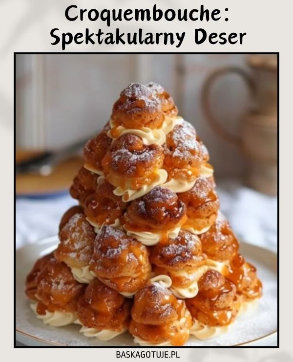 itle -->Ten klasyczny francuski przysmak to wieża z ptysi wypełnionych kremem, sklejonych złocistym karmelem i ułożonych w elegancki stożek. Croquembouche jest często serwowany podczas specjalnych okazji, takich jak wesela czy święta, symbolizując luksus i wyrafinowanie.