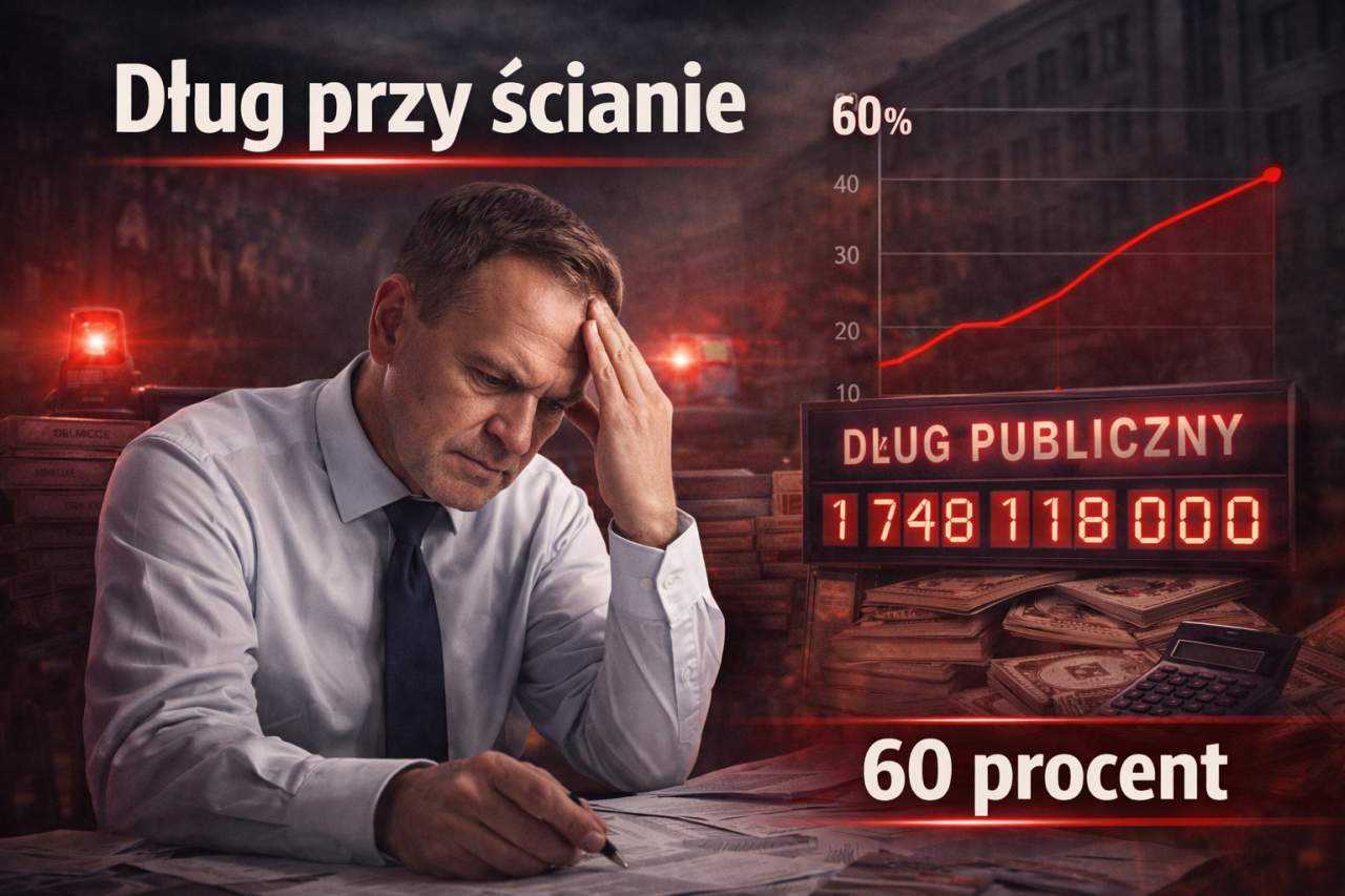 Najnowsze dane o zadłużeniu Polski wyglądają jak finansowy alarm. Pod koniec 2025 roku dług sektora instytucji rządowych i samorządowych sięgnął 2 335,2 mld zł, czyli 59,97 procent PKB. Do konstytucyjnej granicy 60 procent zabrakło dosłownie ułamka punktu.